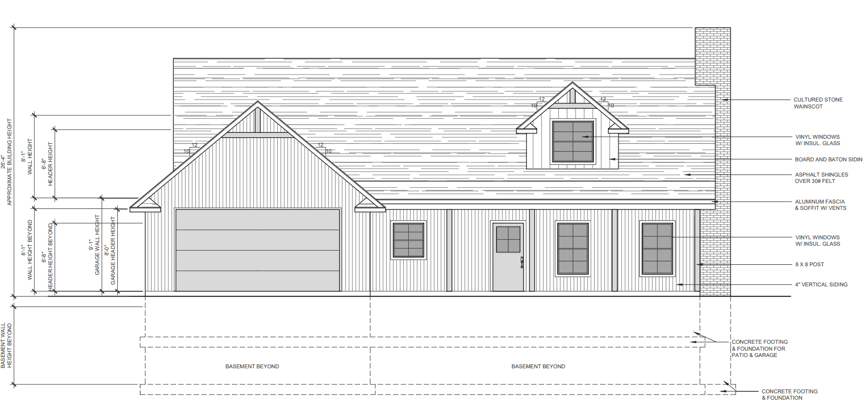 Front porch: slab over 48" frost walls, cedar shed roof