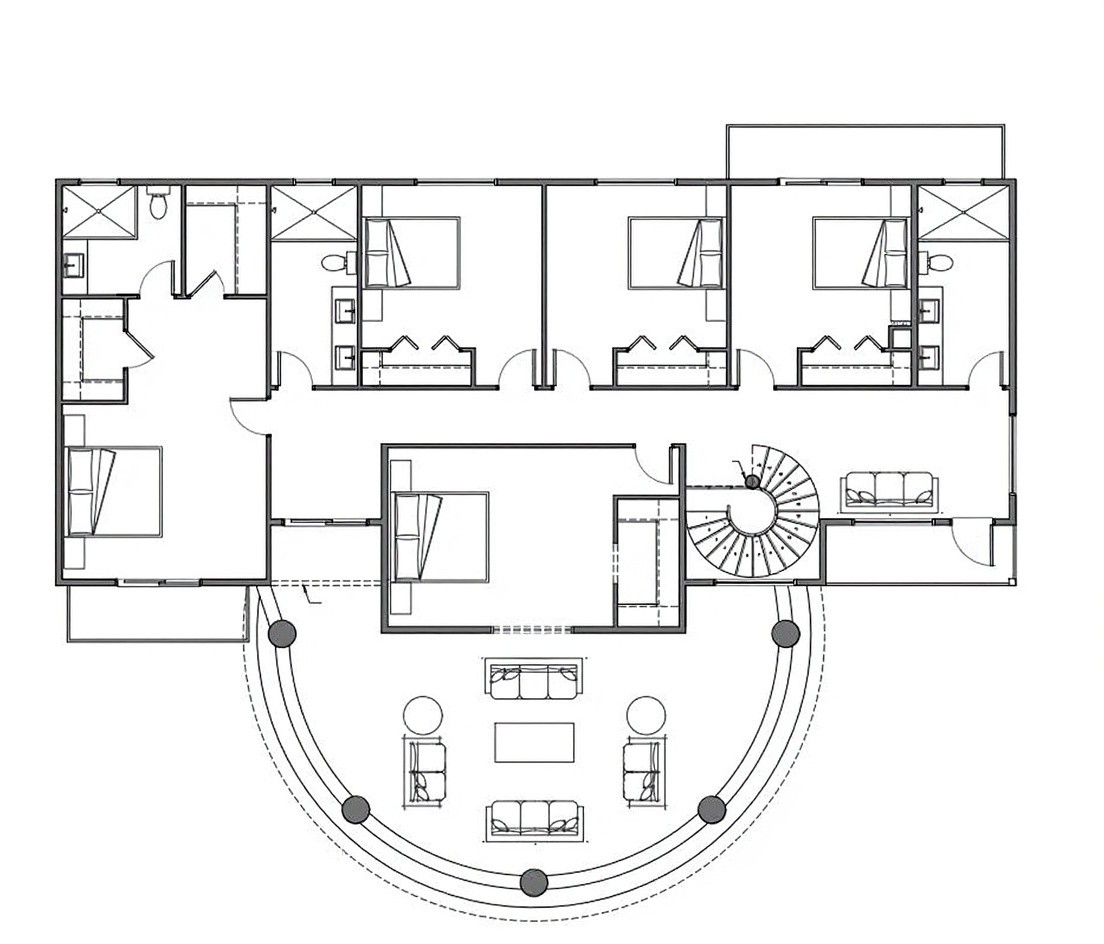 Organizing multiple bedroom suites and balconies without disrupting circulation