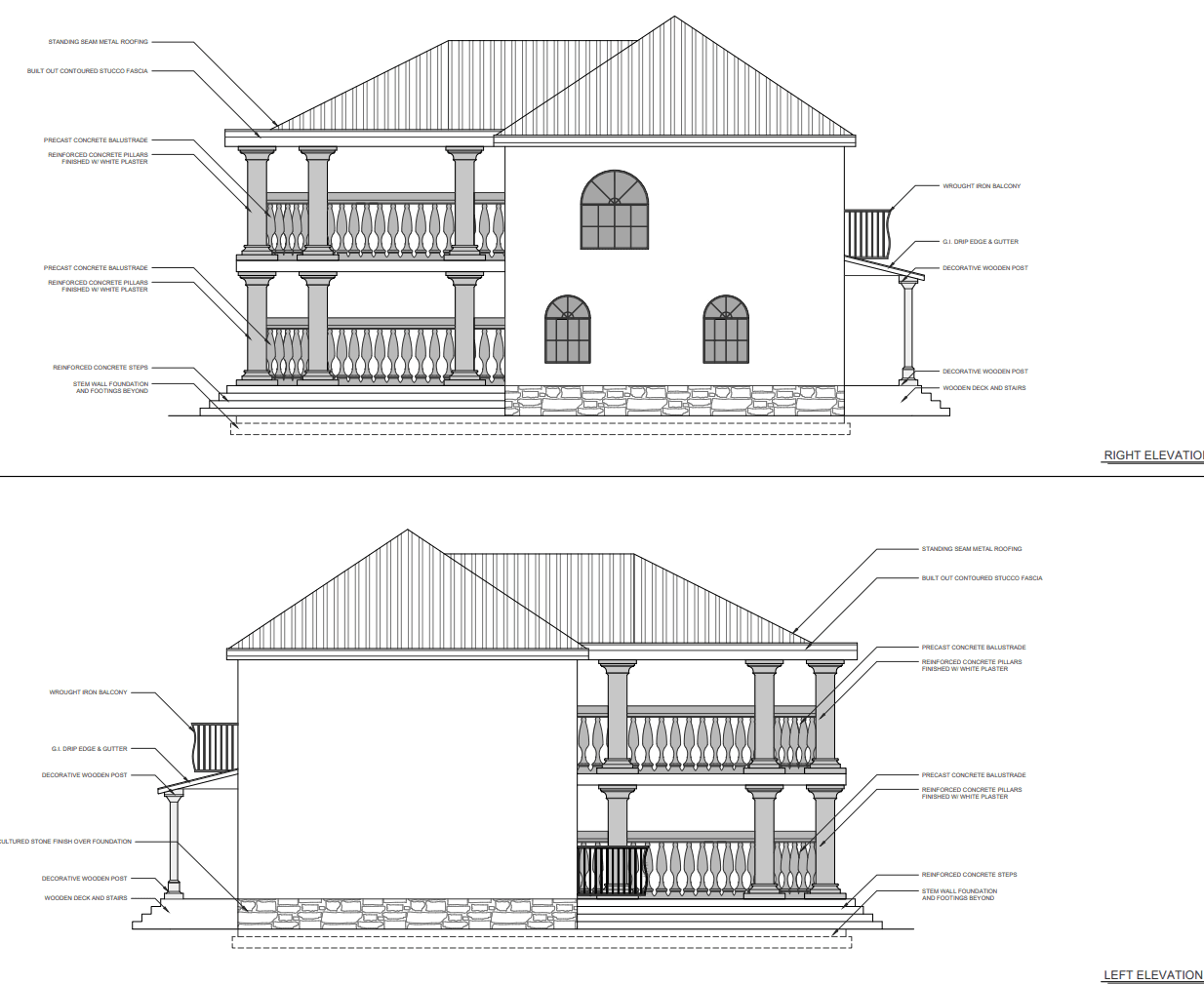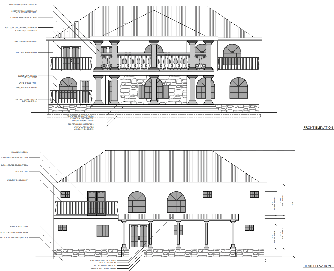 Brisastone is a custom Caribbean residence that blends timeless elegance with coastal luxury through a white stucco exterior, cultured stone accents, wrought iron balconies, and a durable standing seam metal roof. At 4,248 square feet, plus 1,928 square feet of covered outdoor living, the design emphasizes a seamless indoor-outdoor rhythm. Arched windows and wide sliding doors pull in natural light and frame expansive balcony views, reinforcing the home’s breezy island character.