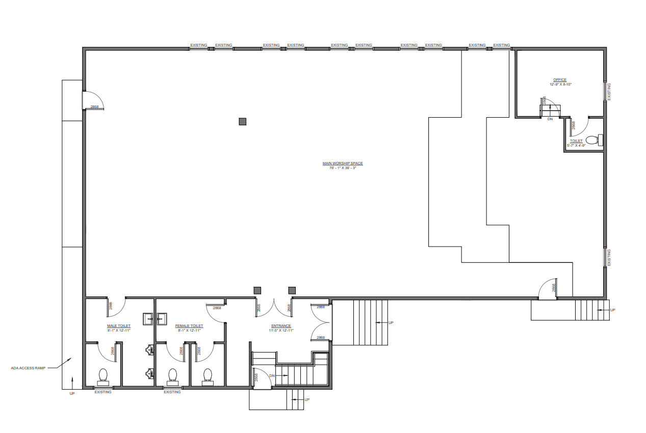 The Cathedralis project includes complete architectural redrafting and coordination for an existing church facility to produce a code-compliant, architect-stamped plan set suitable for commercial permitting. The architectural program includes: