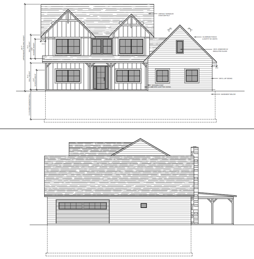Elaro is a modern farmhouse residence that blends clean, timeless lines with purposeful functionality. A two-story form above an unfinished basement anchors the design, while board-and-batten and vinyl siding create a balanced, low-maintenance exterior. Inside, a light-forward great room, kitchen, and dining core prioritize everyday living and effortless gathering. The plan refines privacy and circulation with thoughtful edits to the suite, foyer, and upper hall, delivering calm, clarity, and comfort throughout.