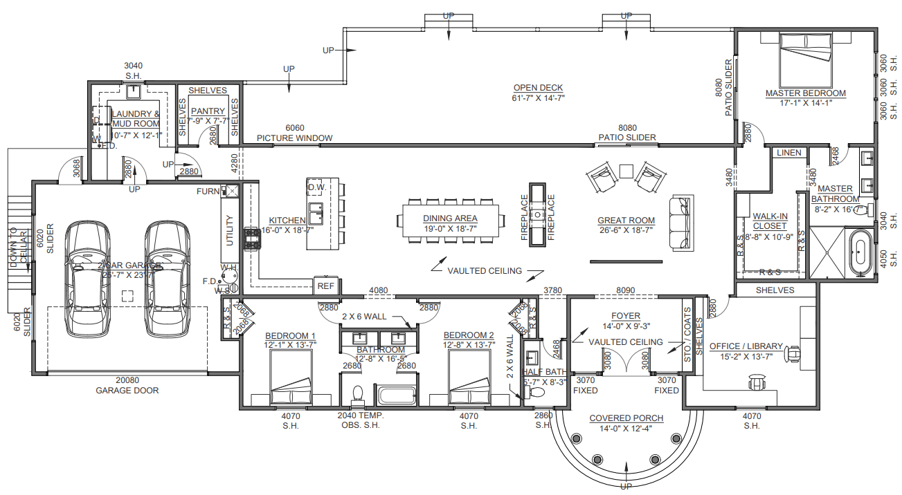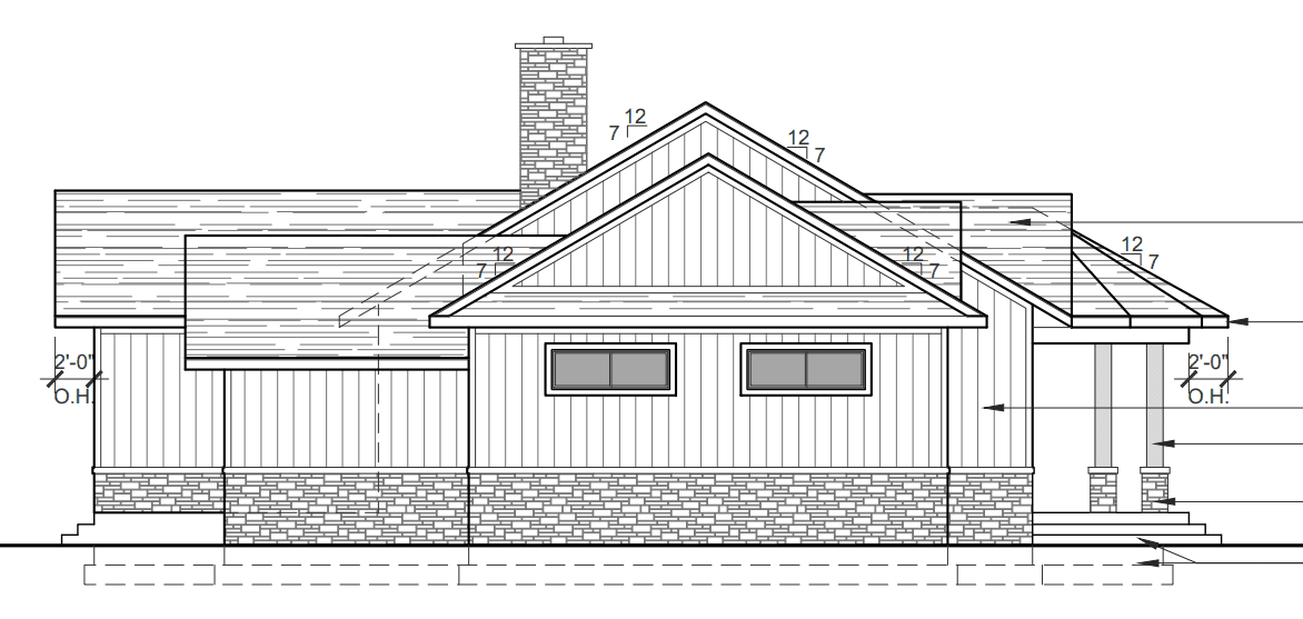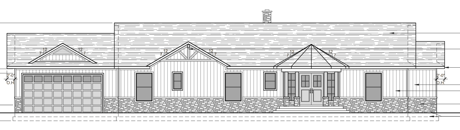 The Elmwarden project includes the complete drafting and design of a custom ranch-style new build with an attached garage and future outdoor wellness connection, prepared as a full permit-ready plan set. The architectural program includes: