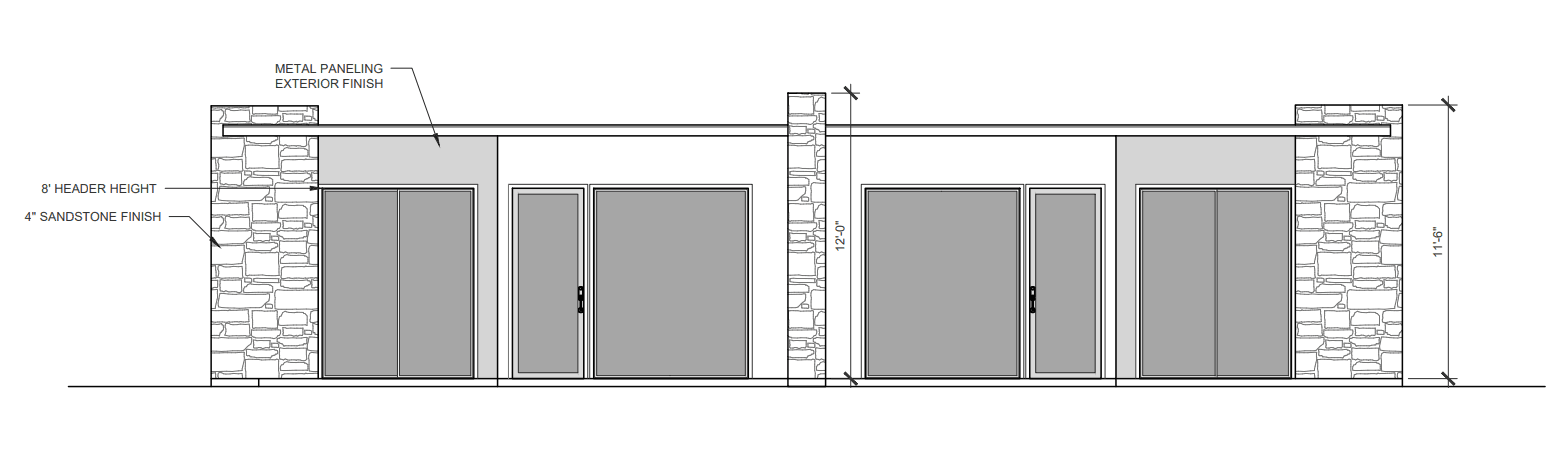 • Natural sandstone block exterior walls using locally available material, coordinated to match the intended stone aesthetic