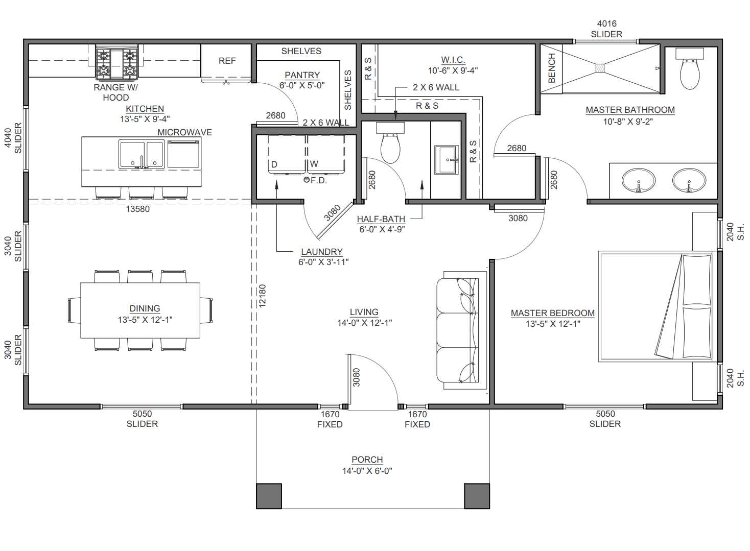 • Conventional stick framing using primarily 2x4 exterior walls with 2x6 where structurally required
