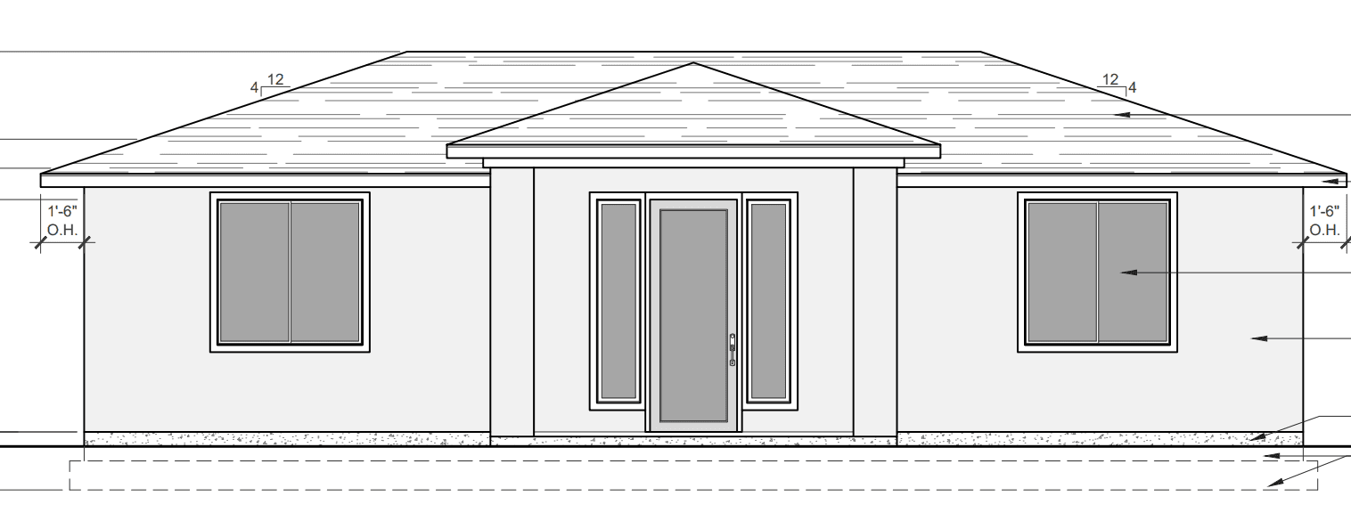 Redchapel is a compact Tonopah-area new build designed to stay under 1,000 square feet while still reading bold and complete from the street. A full-width porch and centered gable create a strong entry identity, supported by a simple trussed gable roof and durable stucco-and-stone exterior detailing. With a clean, permit-ready sheet set and optional engineering coordination, the project is positioned for efficient pricing, review, and construction.