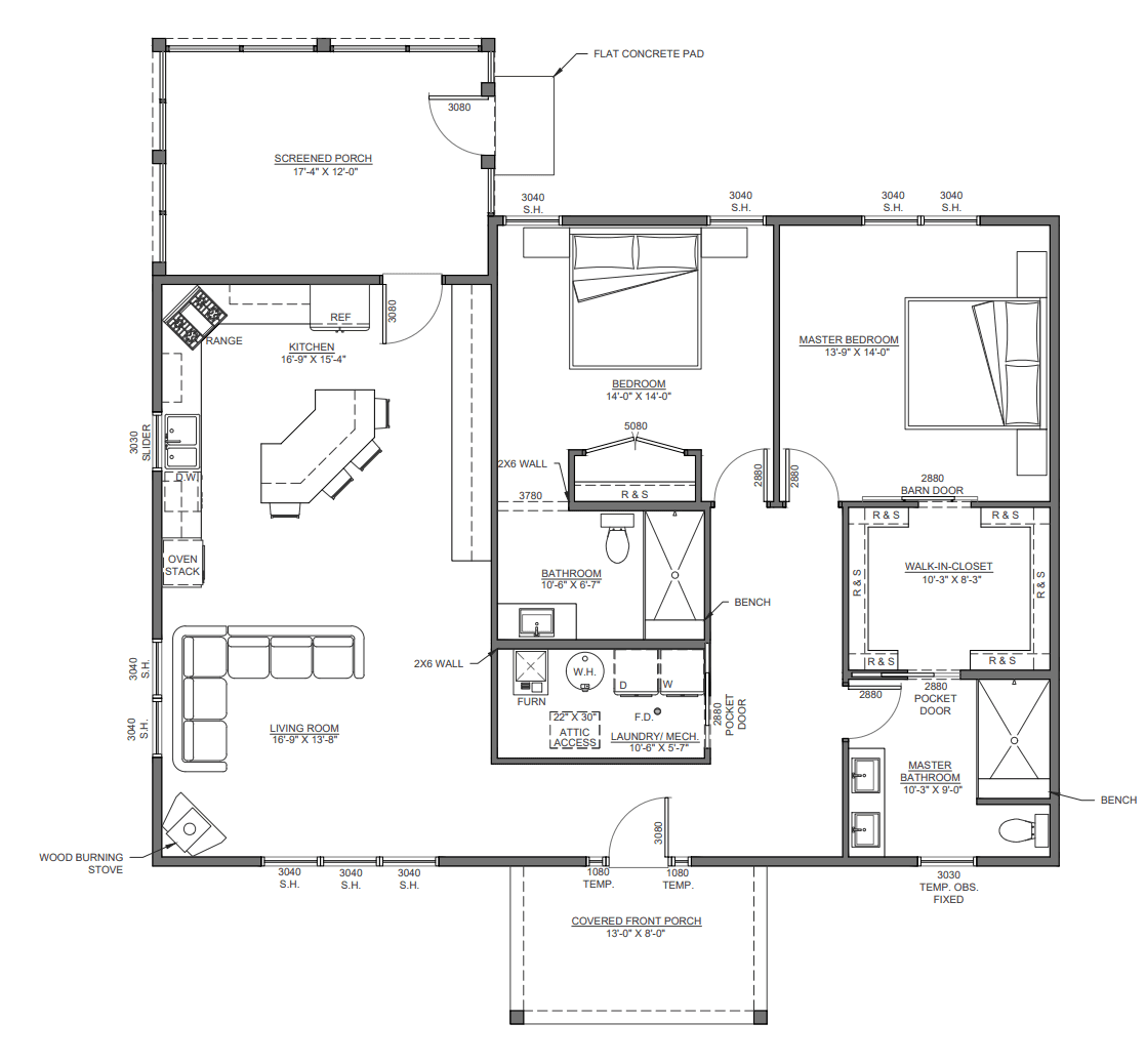 Ridgewisp was envisioned for homeowners who want a smaller, practical home that still feels elevated through thoughtful proportions, light, and exterior presence. The program fits clients who prefer a clear, no-drama plan set they can price and build from without over-customization. It is ideal for those who value a balanced mix of contemporary lines and mountain-cabin comfort.