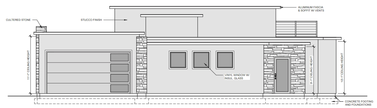 Sablewing refines a reference plan into a streamlined, permit-ready contemporary home that stays near a 2,000 sq ft maximum without sacrificing openness. By removing stairs, simplifying structure, and resizing key rooms with intent, the design keeps construction efficient and upgrade-friendly. A slab foundation, clear roof and elevation scope, and basic MEP layouts support a smooth county submission path.