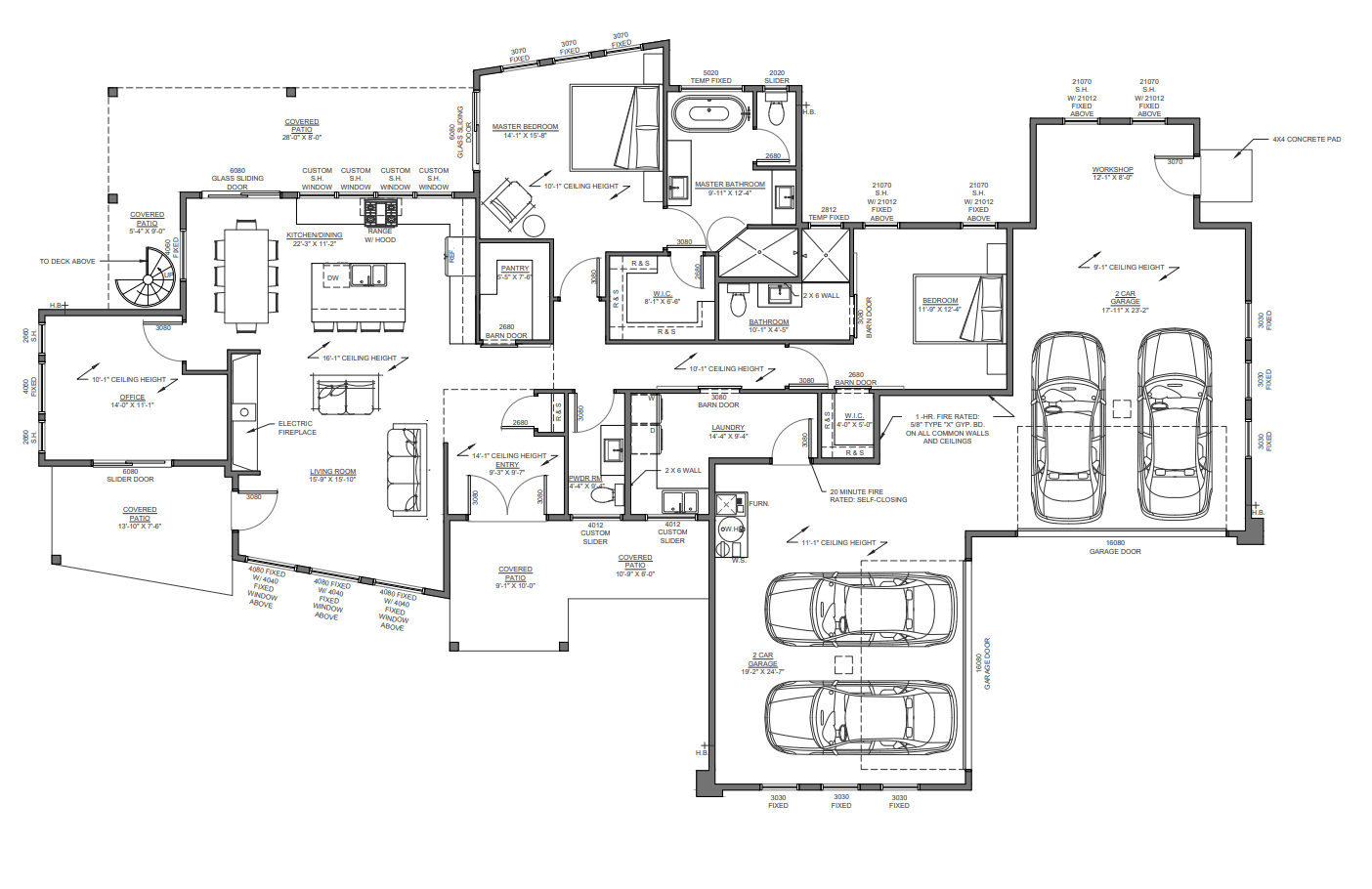 The Sablewing project includes the complete drafting and refinement of a single-level, slab-foundation new-build home designed to meet Yavapai County residential criteria and remain within a tight overall square footage target. The architectural program includes: