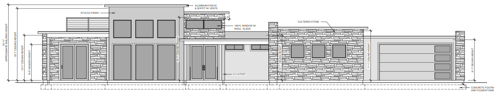 Sablewing is a cost-conscious contemporary slab-home concept designed to deliver high ceilings, strong natural light, and simple construction logic without drifting into expensive structural complexity. The layout is refined from a reference plan and intentionally compressed to stay near a 2,000 sq ft maximum while preserving comfortable room proportions and practical circulation. With no basement and no stairs, the plan focuses on clean, single-level livability that feels open but remains permit-ready and build-efficient.